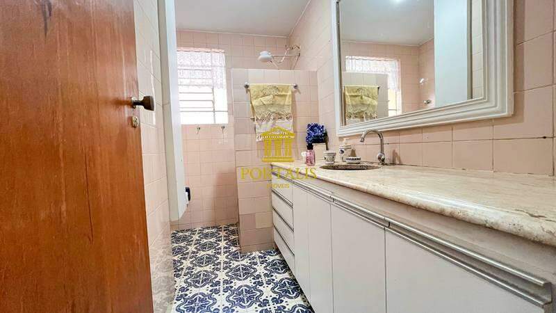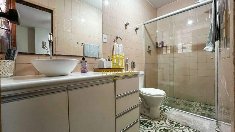 • Lavabo com espelho, piso e bancada em granito, revestimento em cerâmica.