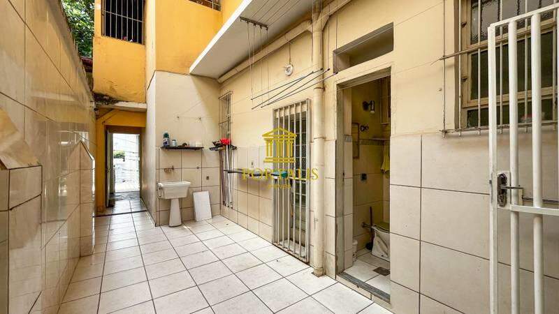 • Área de serviço descoberta e banheiro de apoio com piso em cerâmica.