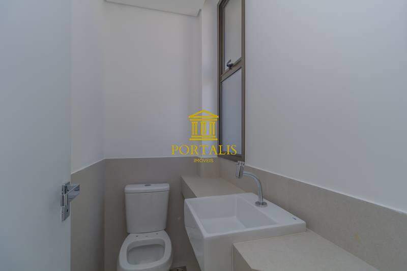Banheiros (suíte e social) com ventilação natural e acabamento em porcelanato.